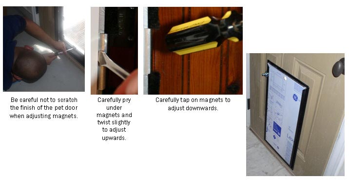 You may also adjust the magnets in the frame if necessary. They can either be raised or lowered so the flaps seal but swing freely.