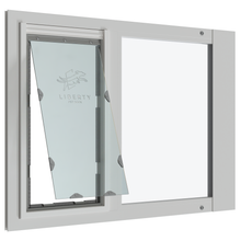 Constructed with a durable white finish, the Liberty Pet Door withstands the rigors of extreme weather and energetic pets. Your window needs a wide track to accommodate your panel. Aluminum panels need a minimum of 1" while vinyl panels need 1-1/4".