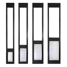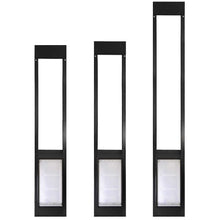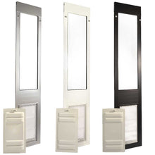• Insulated dog door designed for aluminum sliding glass doors, with three standard adjustment ranges and custom height options.