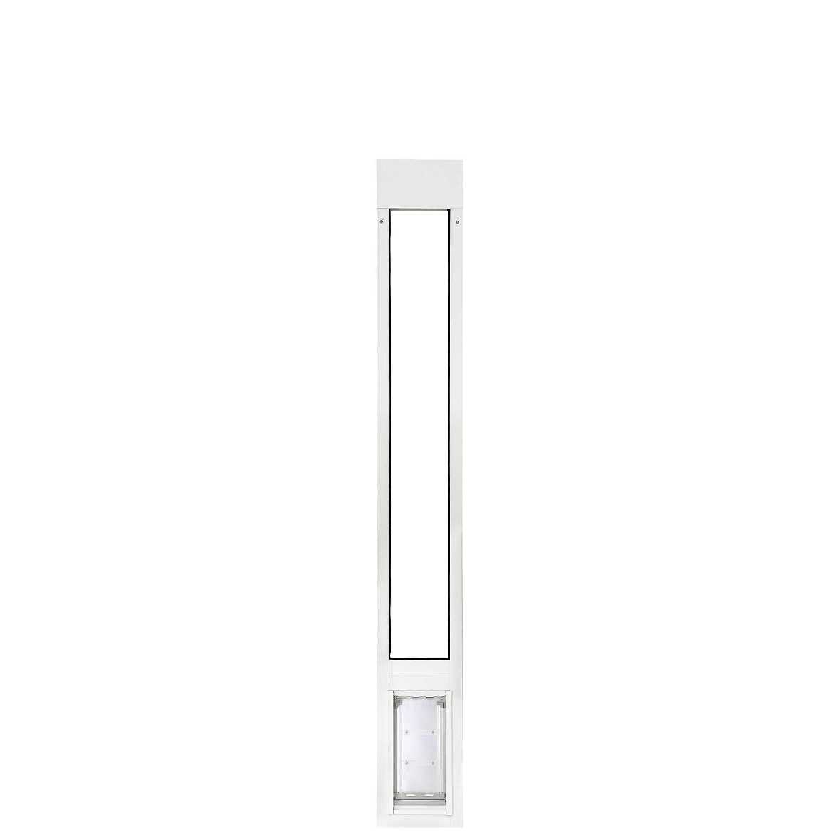 - Insulated dog door designed for aluminum sliding glass doors, with three standard adjustment ranges and custom height options.