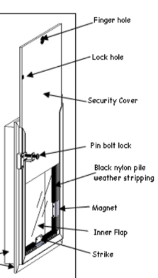 - Normally the locking cover slides straight down from the top and is secured by a steel deadbolt. If there is an obstruction above, you can add a 'side-load option' at no extra charge.
