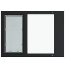 Constructed with a durable white finish, the Liberty Pet Door withstands the rigors of extreme weather and energetic pets. Your window needs a 1" wide track to accommodate your panel.