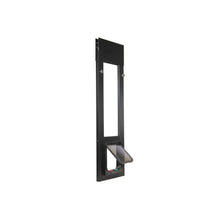 Aluminum pet door has 1" framing; vinyl pet door has 1.5" framing. Measure your track width to make sure that your window will accommodate the panel.